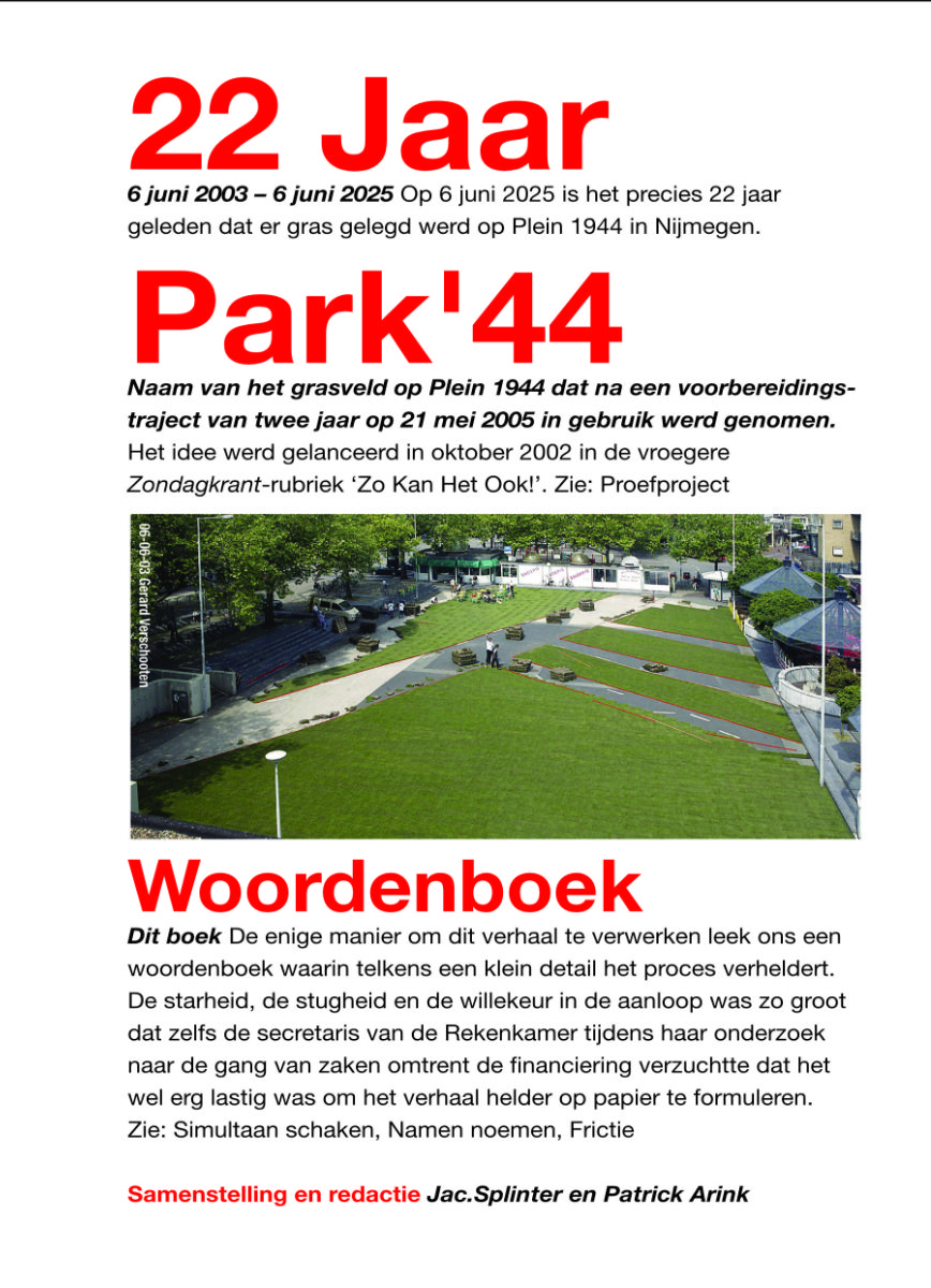 22 Jaar Op 6 juni 2025 was het precies 22 jaar geleden dat er gras gelegd werd op Plein 1944 in Nijmegen.