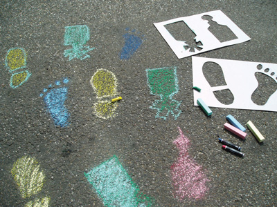 er hebben ruim 400 mensen meegedaan, het had zachtjes geregend, het krijt hield goed op het asfalt, tegen een uur of half twaalf werd het droog. de kleuren kwamen helder naar voren en het krijt werd de uren daarna verspreid over de straat. Het vrolijke patroon staat op heeeel veeel foto’s uit dat jaar.