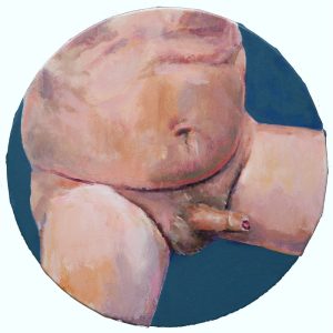 Erectie… Acryl op hout, rond 20 cm