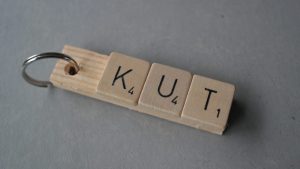 Rinske Kegel: Ik vertelde aan de initiatiefnemer van Pakje Kunst dat ik voor hun kunstautomaat sleutelhangers met scrabbleletters wilde maken met daarop stoute woorden, zoals KUT. Maar kut, nee dat kon echt niet. Dat ging toch echt te ver. Het grappige is, ik huur nu zelf een vak in de winkel waar de automaat hangt en daar staat een doos vol sleutelhangers met stoute woorden. En die verkopen erg goed.