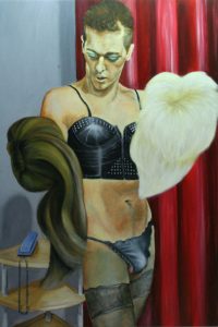 Jongeman als crossdresser (uit een serie van 14) Acryl op doek 1.30 x 90 cm