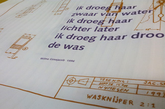 WIlma Gosejacob schreef de tekst, de technische tekening is nog uit de academietijd. In Belgie heten ze Keukenhanddoek.