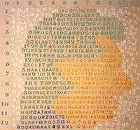 “Grote mensen houden van cijfers” was het uitgangspunt bij deze muurschildering. Alle getallen waar ik mee te maken had of cijfers die voorkwamen op documenten over mij, heb ik hierin achter elkaar gezet: van geboortedatum via pincodes naar sofinummer en schoenmaat.